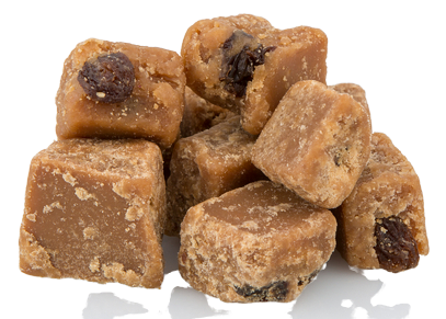 Ingrediënten: Suiker, Glucosesiroop, Gezouten Boter (Melk) 12,5%, Omgekeerde Stroop, Melkpoeder, Gemengde Schil (5%) (Sinaasappelschil, Glucose-Fructose Siroop, Citroenschil, Suiker, Zuurgraad Regulator: Citroenzuur, Conserveermiddel: Zwavel Dioxide), Sultana (5%), Rozijnen (5%), Aroma.